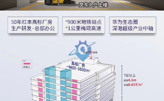 一:【交通】位于龙华大浪,龙大高速,沈海高速,福龙快速出口附近,交通方便 旁边地铁出口,地铁25号线已规划 二:【商业配套】自带大型商业体,商业,住宅,公寓,周边学校,医院,吃穿住行一体化满足日常所需和招待客户 三:【产品优势】 稀缺产品:可售型生产研发用房(M1),每户可独立分割,享有独立红本 高标品质:层高4.5-6米,承重0.65-1.5吨,柱距大于9米,实用率高 空间灵活:单套面积约1212.98—4960㎡,根据需求灵活配置资产 用途多样:可集研发、生产、中试、检测、展示、总部形象办公等功能于一体 工业上楼:3吨货梯+每户吊装窗口,专配卸货平台和吊装平台,工业设备可上楼 企业形象:玻璃幕墙外立面+高质感铝板,高颜值、高品质彰显企业高端形象 绿色生态:采用退台式绿化、屋顶花园等生态设计理念,打造绿色生态花园式研发生产用房