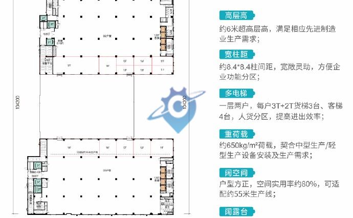 深圳坪山全新国有双证红本厂房出售1700㎡起售现房 国企全新红本厂房? 最大整层可售约6600㎡? 最小分割可售约1700㎡ 项目简介 总占地面积约2.92万㎡ 计容总建筑面积约17.54万㎡ 其中高端制造业厂房约16.2万㎡ 宿舍约1万㎡ 食堂、商业等配套用房约2500㎡。