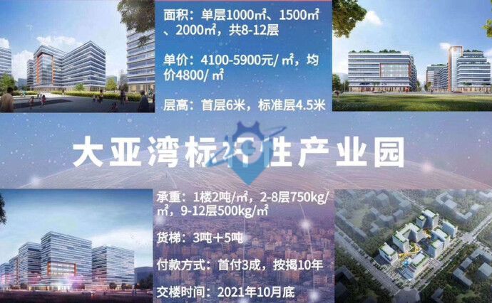【大亚湾】【大亚湾】【大亚湾】 红本全新独院花园式厂房隆重招商【预计12月份全部交房】 A1栋厂房1-5F19440平方 A2栋厂房1-6F15837平方 宿舍1-6F6010平方 A1栋配2部货梯【5吨】 一部客梯【3吨】 A2栋配2部货梯【5吨】 一部客梯【3吨】 宿舍配2部【客梯】 厂房亮点 全新厂房形象好、空地12000平方、宿舍配独立热水器、带消防喷淋、成熟工业区周边有大型商场 园区临石化大道,高速出口3公里范围内!位置好易招工! ————————————————