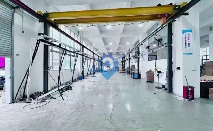 宝安主干道边上新岀一楼标准厂房出租,面积1200平方,有精装办公室,带航车,高度5米,租金实惠