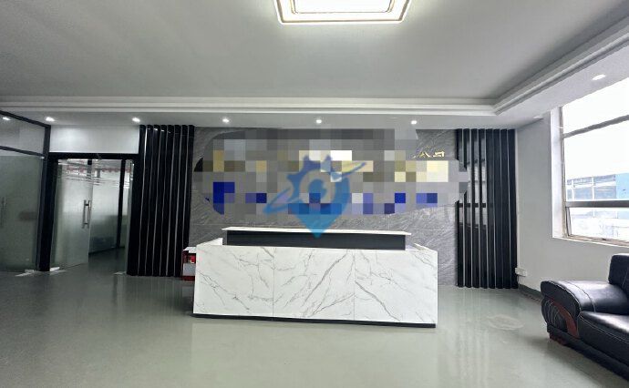 沙井新桥东环路工业园区,独门独院楼上整层1200平方,豪华精装修,水电齐全,有前台,办公室装修,车间地坪漆吊顶,合同五年。