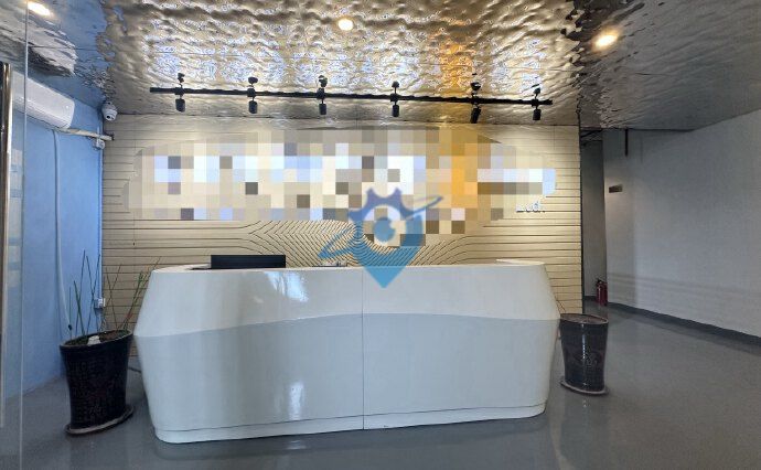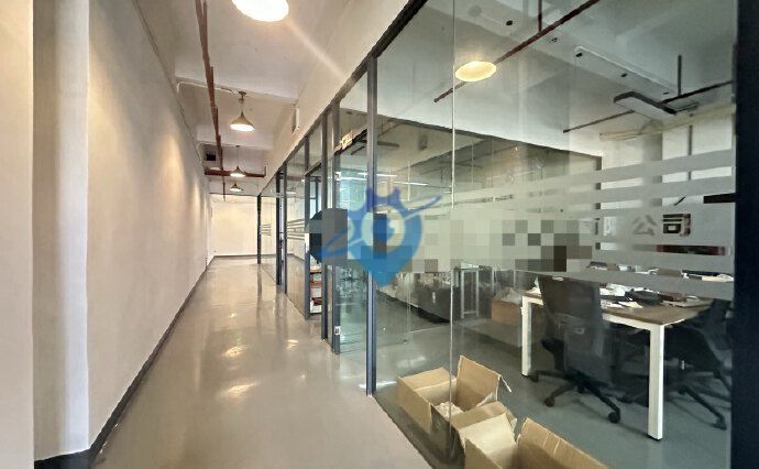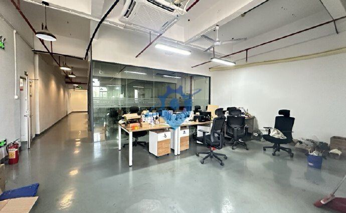沙井新桥原房东工业园区楼上精装修600平方,有前台,玻璃办公室装修,车间地坪漆,有消防喷淋,水电齐全,有客梯,货梯,适合电子组装,设备,电子烟企业。